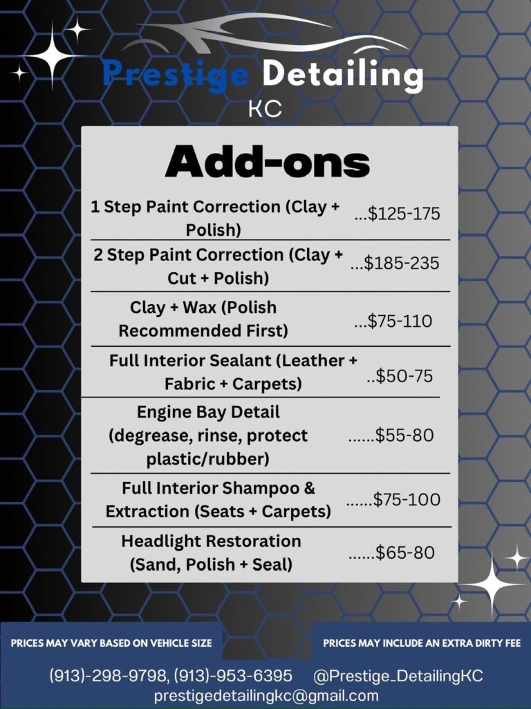 Choose between many of our featured add-ons to make your car detailing perfect! Curious about our full service and add-on list? Check out our services page!